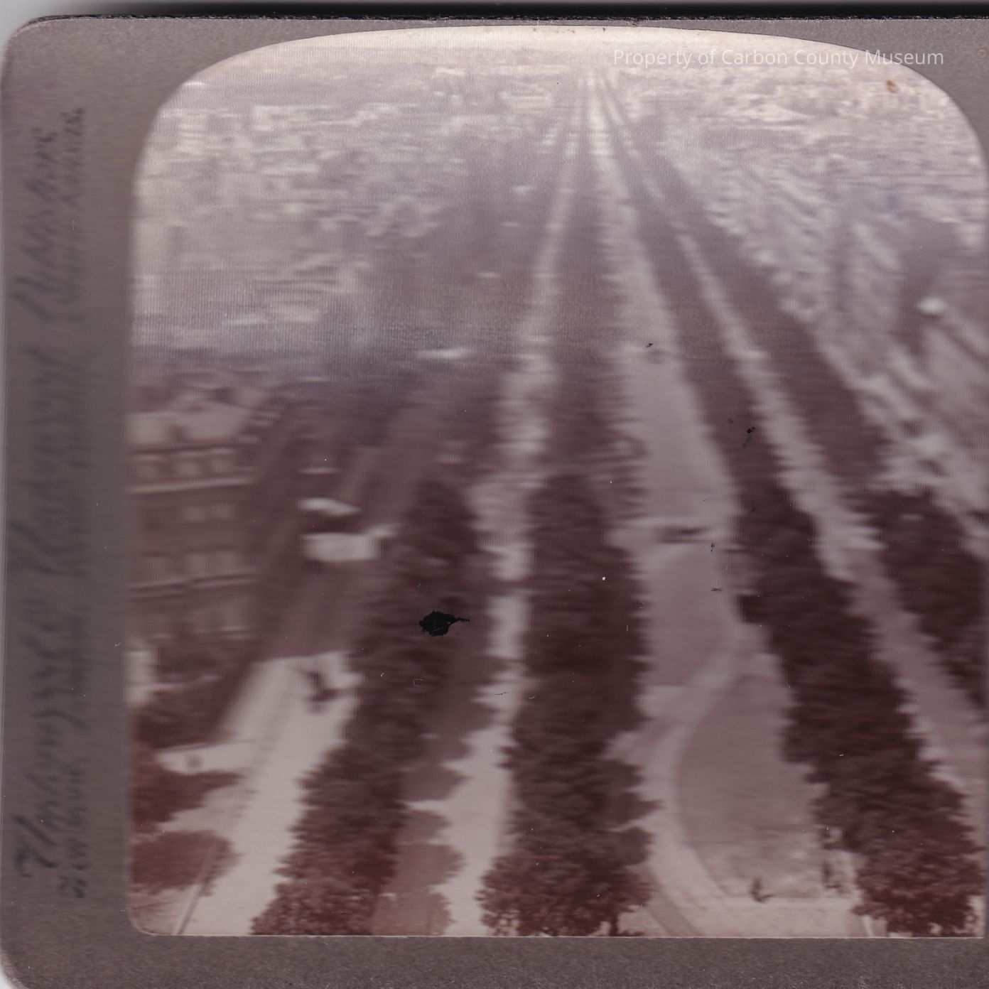 No #, The Ave. of the Grand Army looking northwest from the top of the Arch of Triumph, Paris, France, 1900