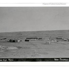 Printed on bottom in white: "Birds Eye View" "Van-Tassel, Wyo."