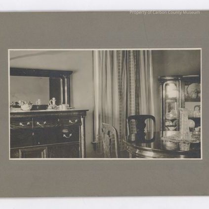 Dining room table, china closet and buffet. Unknown house.