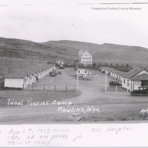 Written on front in white on negative: "Ideal Tourist Camp Rawlins, WYO" "Meyers Photo"