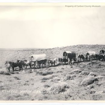 Written on bottom in white on original negative: "Covered Wagon Days in Wyoming Meyers copy"