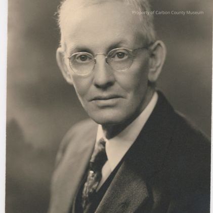 Update 5/2010: Black and white studio portrait of an elderly man. He is wearing a 3 piece suit and dark tie and white shirt. His hair is grey and he wears wire rimmed glasses.