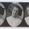 Update - 2009: Black & white print of thee head & shoulder poses of a young lady on one photo. she is wearing a light colored dress & has on a locket necklace. Her hair has a large dark bow on back.