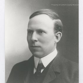 Update 2008: Black and white copy print. Studio portrait. Head and shoulders image of a man in a dark suite with vest, dark tie and white shirt. He has short hair and is clean shaven.