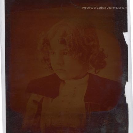 Update 2009: Black and white studio proof print image of young girl with chin length curly hair. Light colored shirt with round pearl buttons at neck above a cravat looking sash. Dark shoulder coverings. Written on back in black ink: "Helen McMicken daughter". Condition poor. Silvering, faded, right edge torn, creased, scratched, fingerprints, accretion, corners ripped off.Collection