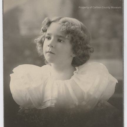 Update 2009: Black and white studio print of a young girl. She is wearing a light colored, large collared dress. Collar is trimmed with ribbon and lace trim around neckline. Her hair is parted in middle and curled over her ears. Written on back in black ink: "Helen McMicken Age 5".