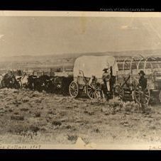 Written on back in blue ink: "First bull team out of Rawlins for Buffalo - 1869" "Copy provided by the Wyoming State Archives and Historical Department: size 5 x 7