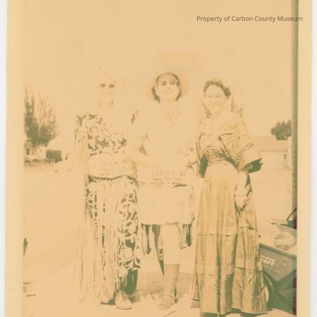 Faded picture of 3 women in costume for H. Larsen Hardware. 5 x 7" poor condition.