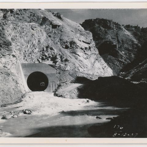 Written on back in black ink: "Tunnel" "Seminoe Dam Construction 1937-39 [7 corrected in pencil to 6]."