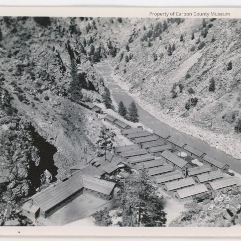 Machine shop and bunk houses at Seminoe Dam in 1937.