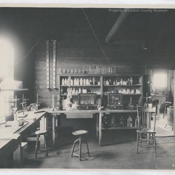Written on back in blue ink: Assay office at the smelter at Encampment. A white sticker at lower left corner has Ferris Haggarty Mine written in pencil.
