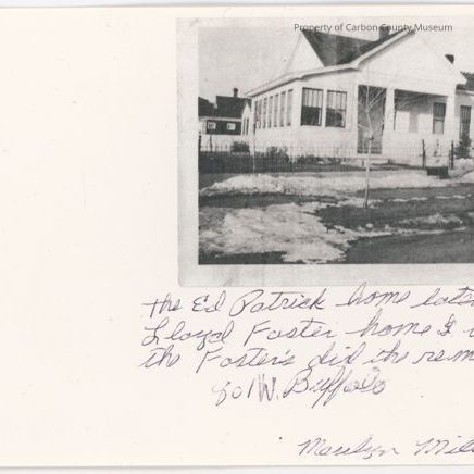 Written on bottom in black ink: "The Ed Patrick home later the Lloyd Foster home. I believe the Fosters did the remodeling 801 W Buffalo Marilyn Mills donor"