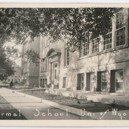 An undated photographic postcard, 4 1/4" x 5 1/2" of the University of Wyoming Normal School.