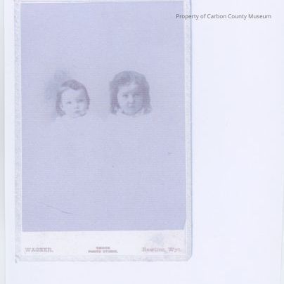 A photocopy of an Omega photo Studio photo with name Wagner printed on left and Rawlins, WY on the right. Photo is of infant Walter Kocken and young toddler, Esther Kocken. Picture is too faint for details, both have dark hair.Collection