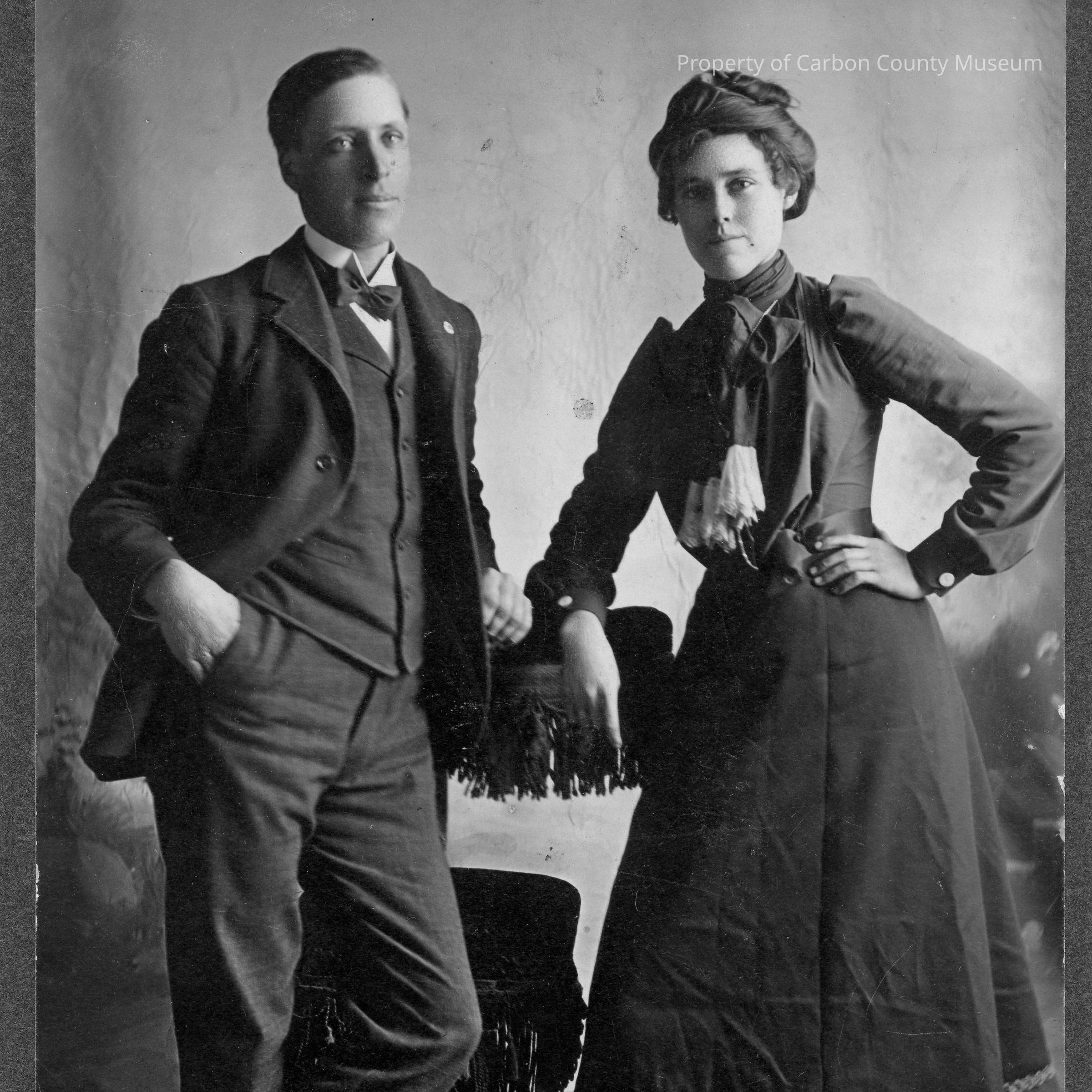 Written on back in blue ink: "John Cheesbrough and Mary Dickenson Cheesbrough about 1901 Mary daughter of William & Sarah Dickenson early day residents of Carbon, Wyo" "M'liss Veitch Strain"