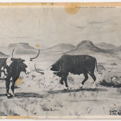 Printed on front bottom edge: "Texas Longhorns." Printed on right corner:" COPR 1949 90 J.W. Benson."