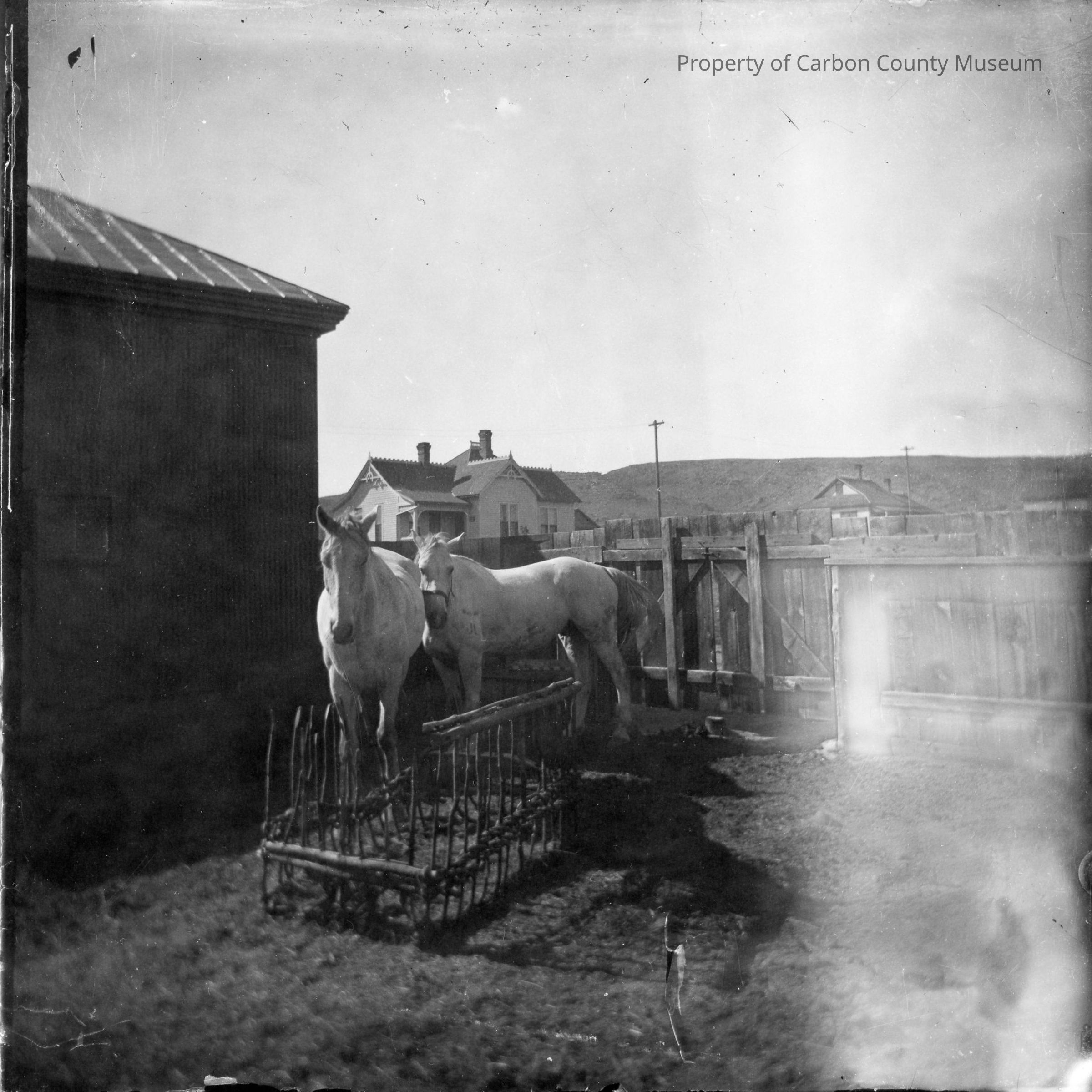 Two white horses in Jungquist yard