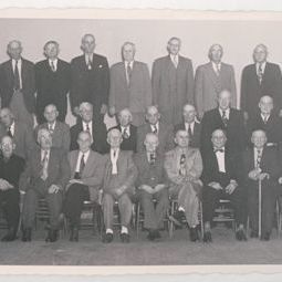 Middle row, left to right: F. F. Kraft, Peter G. Johnson, J.L. Hatch, Ole Olson, Frank Schilt, K.H. Hadsell, Henry Perrett, Gus Larson, Walton France, E. F. Bennett, Lou J. Nelson, Skerner Rasmussen, D.P. Espy, Chris Brown, Frank Low, E. A. Durant, Hans Larsen, I.J. Rendle, A.S. Roach, C.A. Conyers.