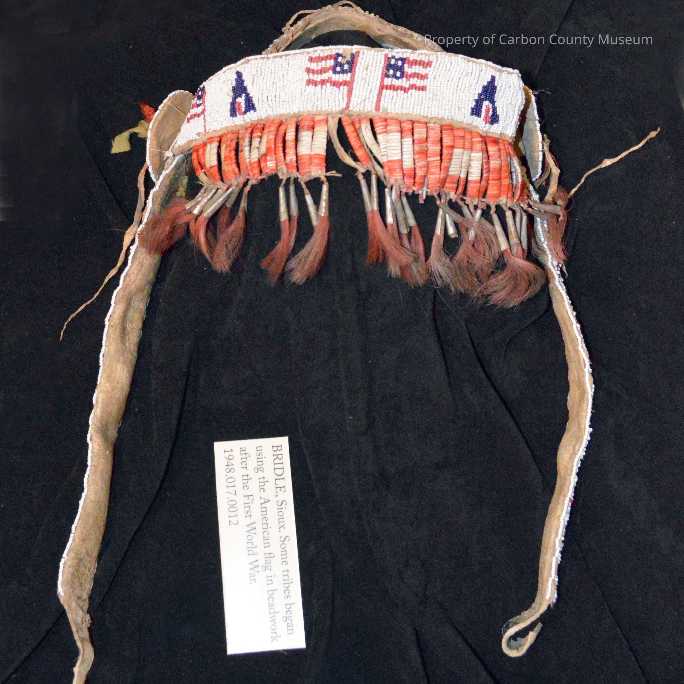 Sioux beaded head stall for horse bridle. Has American flags in beadwork.