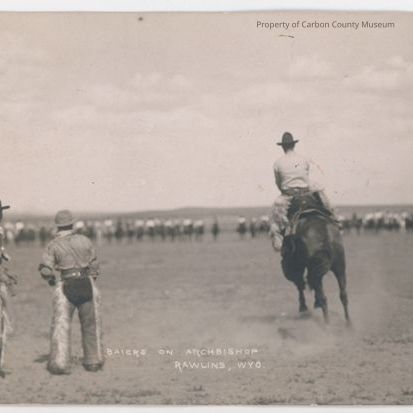 Written at center bottom on original negative: "Baiers on Archbishop Rawlins, Wyo."