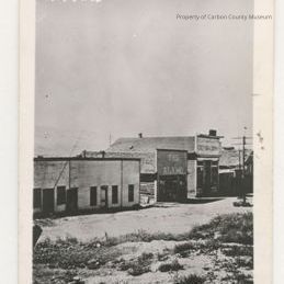 Update 2009: Black and white print card of 500 block of South Front St. Image of 4 buildings, written on far left building: "Southside Saloon." It is a light colored clapboard with dark trim and doors and windows, to right is building identified as: "The Alamo". It is a log side with clapboard tall store front. Farther to right is taller building with sign that reads: "Cozy Saloon". Next building to right only partially visible. Brush and dirt in foreground. Printed on top front in white on original negative: "RAWLING [sic][Rawlins] FRONT ST. South of railroad tracks." on bottom right "119".