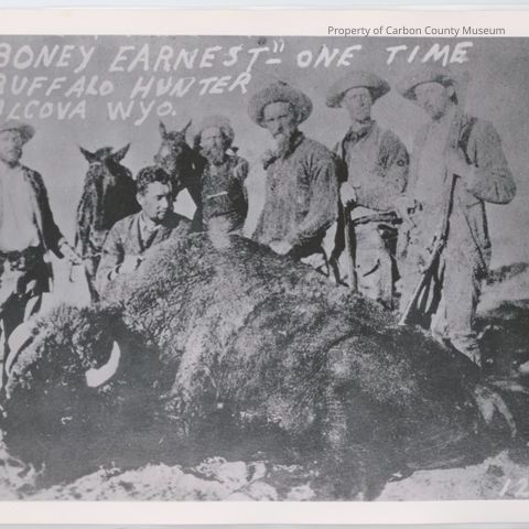 Written on original negative at top: "Boney Earnest" one time Buffalo Hunter Alcova Wyo." {In lower right corner} 129.