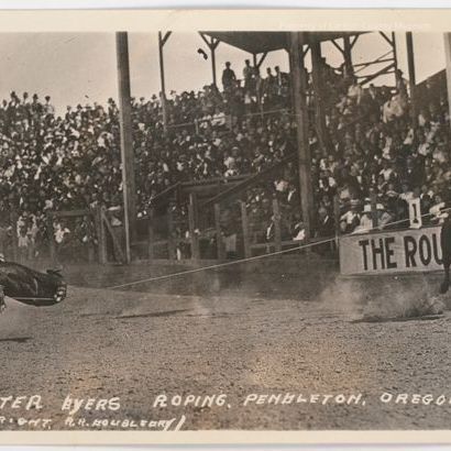 Written on original negative at bottom: "Chester Byers Roping, Pendleton, Oregon. Copyright R. R. Doubleday."