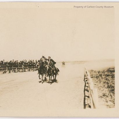 Rubie Rivera getting drunk off race track, 1909, Rawlins Rodeo.
