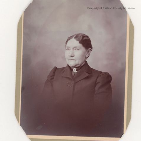 Update 2009: Black and white studio portrait print attached to an ecru mat which has had the corners cut off in a rounded fashion leaving only "on" as the name of the photographer on the bottom of the mat in dark gray print. "Rawli" is remaining on opposite side of mat with a small decorative icon in the middle of this lower edge. Print shows older woman dressed in dark jacket with dark high neck blouse showing at neck. A small circular photograph broach of Dr. heath is at center front of collar. The woman's hair is center parted with waves on side and pulled back into bun. A shadowy background is behind her.