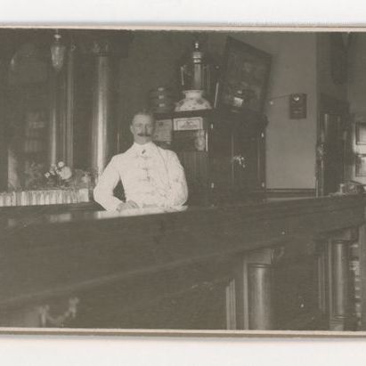 Written on back in blue ink: "Lou Nelson at bar of the Elks Club, 1906."