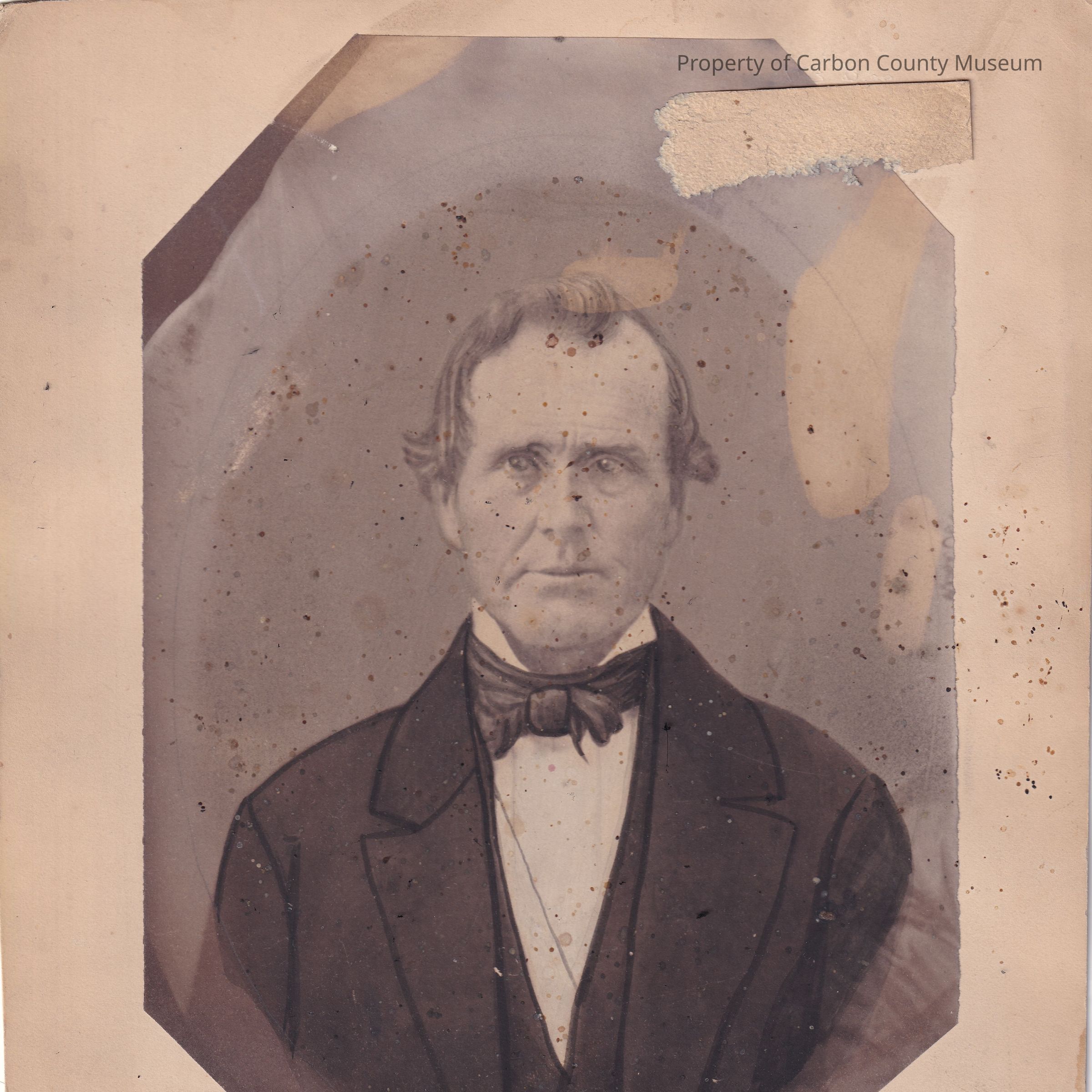 A black and white pasted onto a backing, appears to have been painted over. Text on the backing reads "Orin Belknap" and "1 1/4". On the reverse is written "Mrs Mallie Rima 198 Each for W L side".Collection