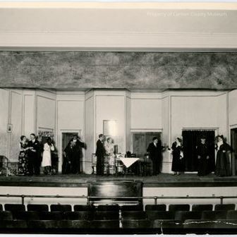 Written on back in pencil: "Rawlins High Auditorium, Used Kids & Adults, Picture taken 1930's to early 40's"
