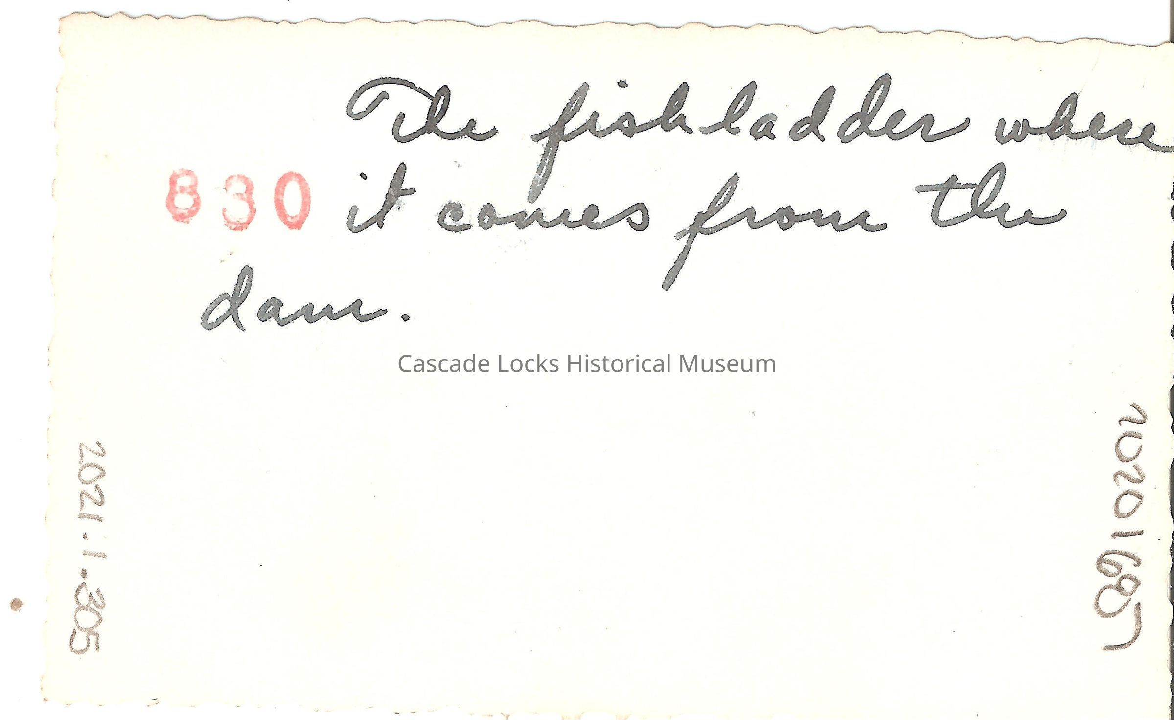 Back of image reads; "The fish ladder where it comes from the dam."