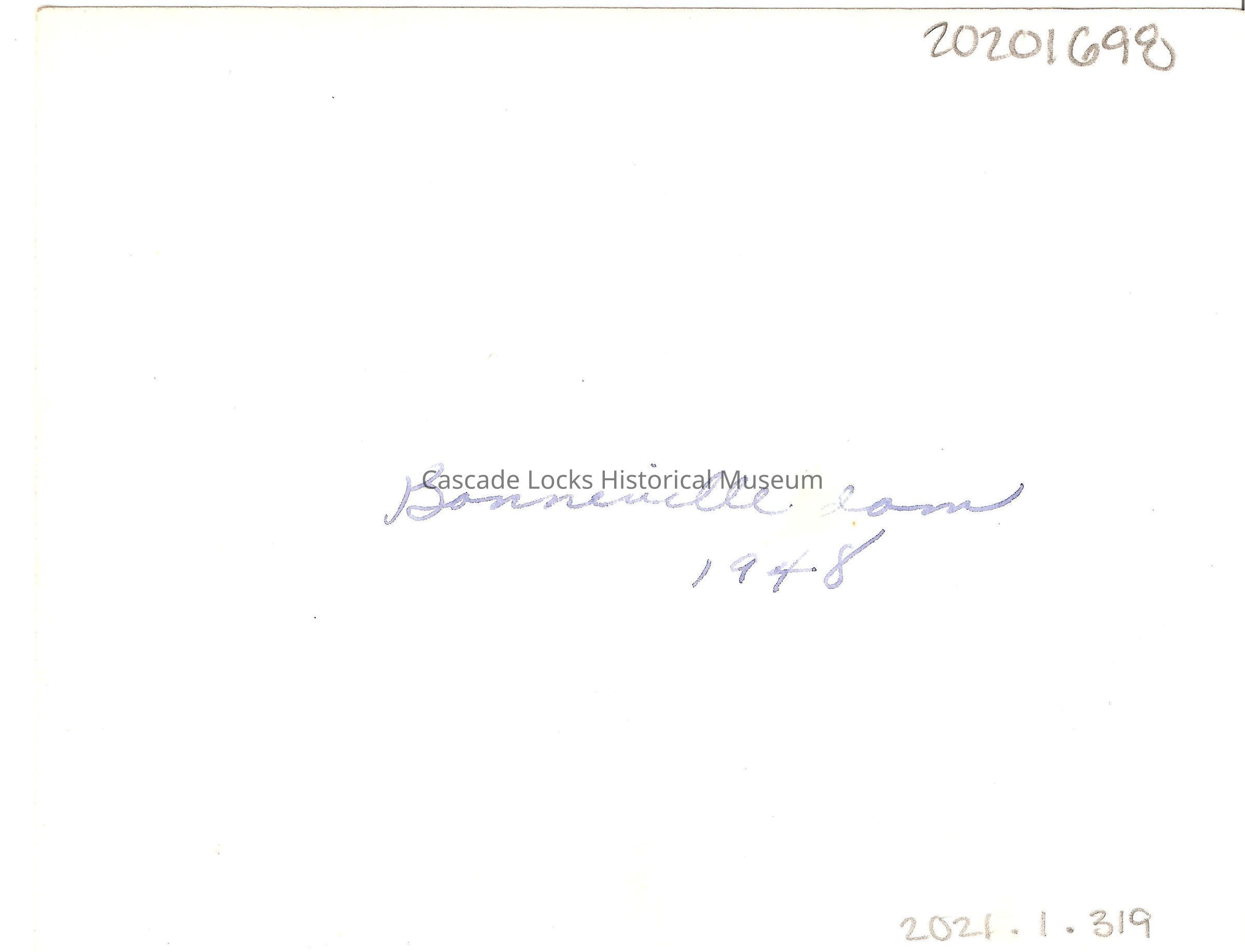 Back of image reads; "Bonneville Dam 1948"