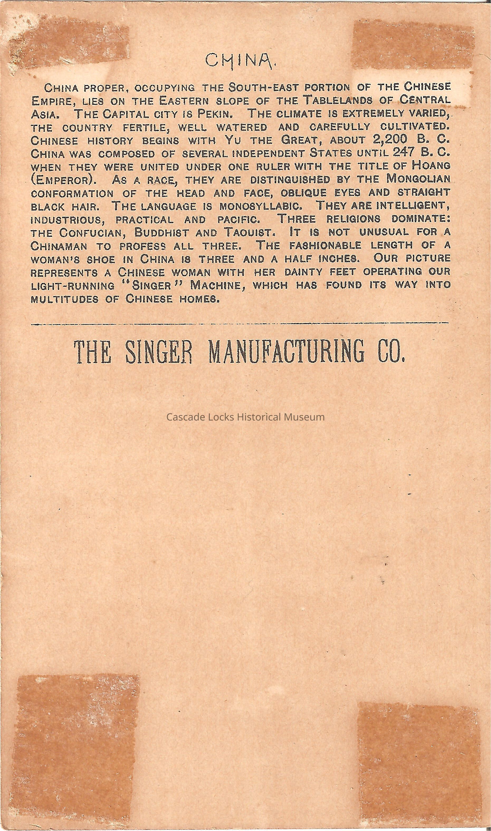 Collectors Cards from Singer MFG. Co.