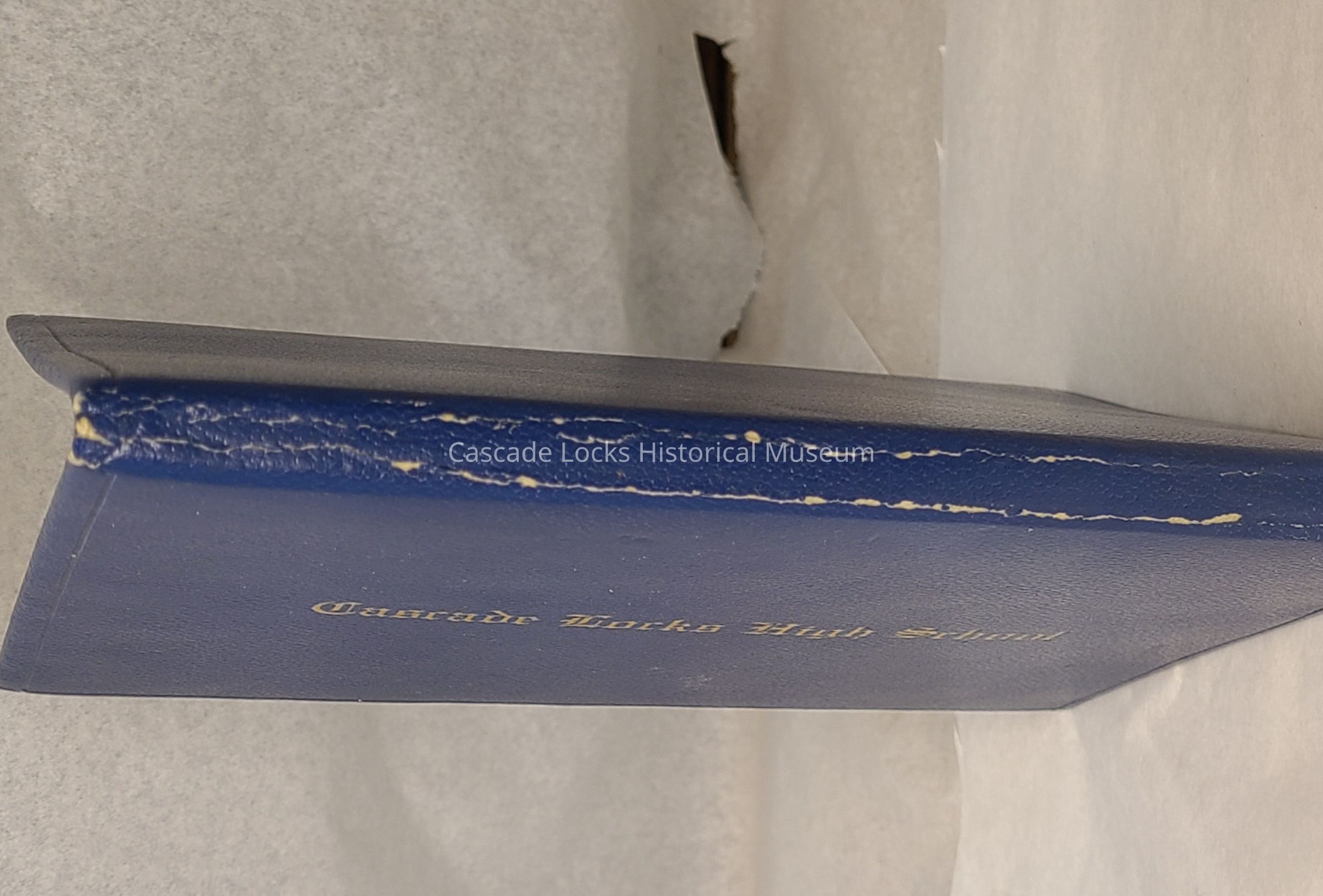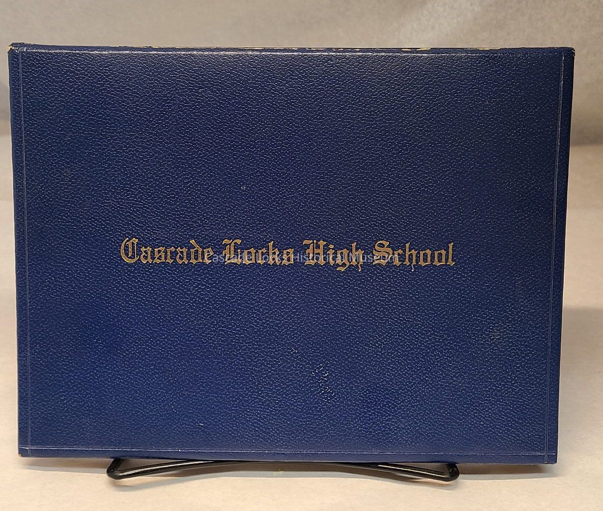 High School Diploma awarded to Lorraine Massey in 1972. Diploma is in a case with Cascade Locks High School in gold.