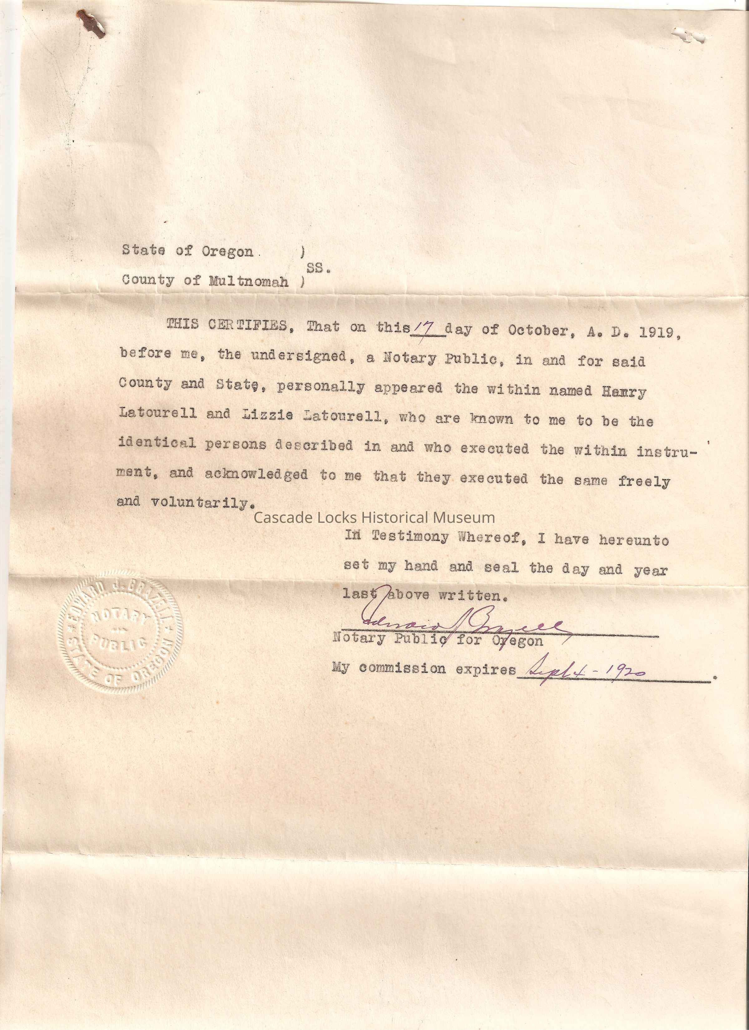In testimony whereof, I have hereunto set my hand and seal the day and year last above written. Signed (elgible) Notary Public for Oregon. My commission expires Sept 4, 1920.