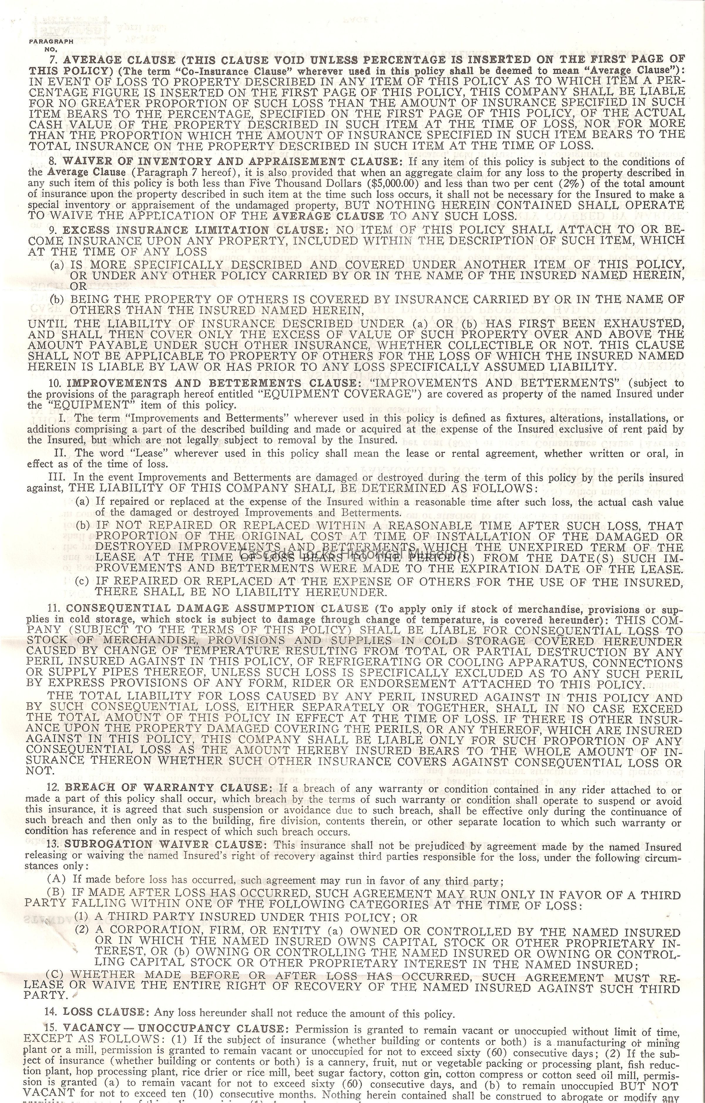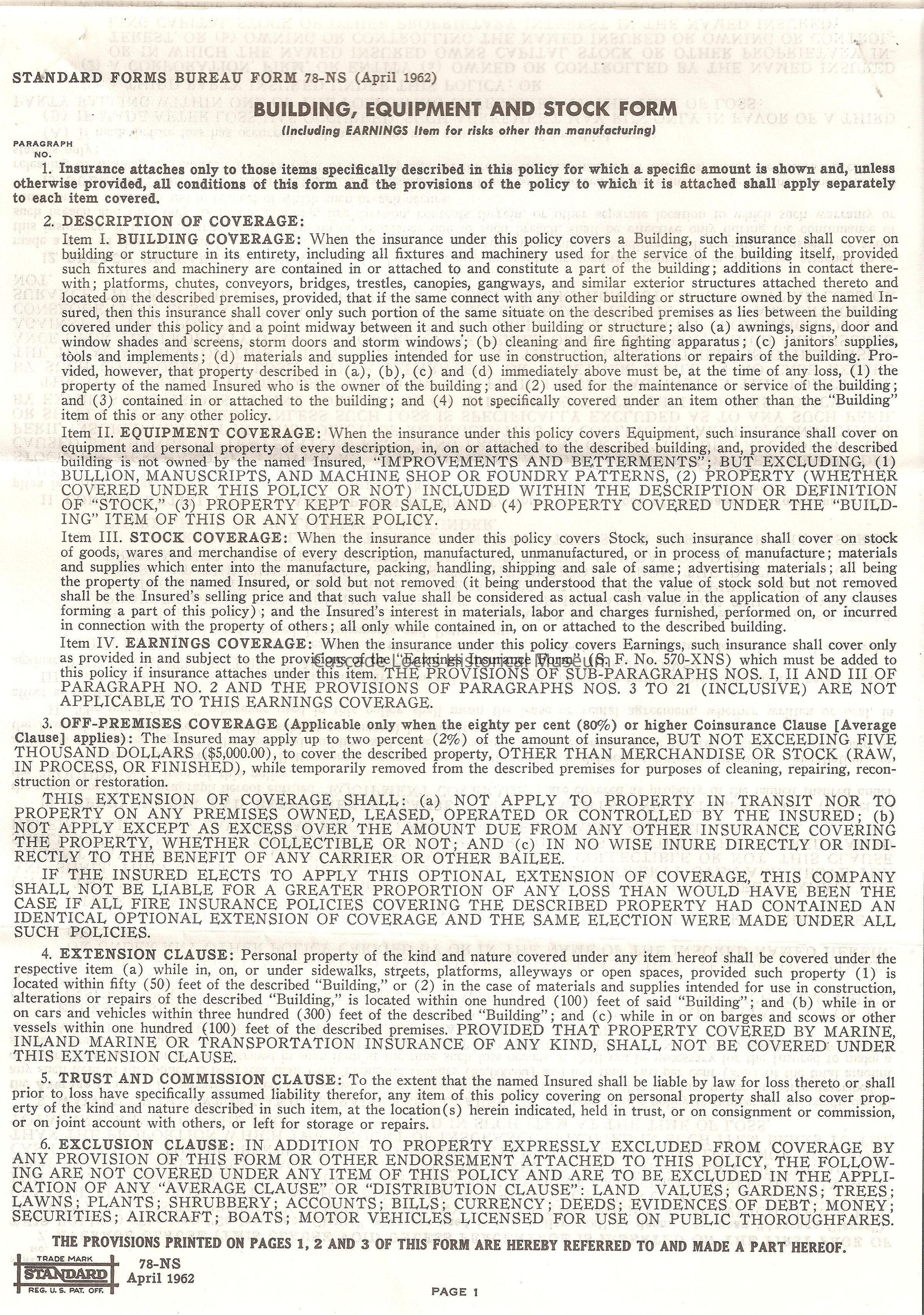 Document Type- Insurance. 10 Pages of paper documents.