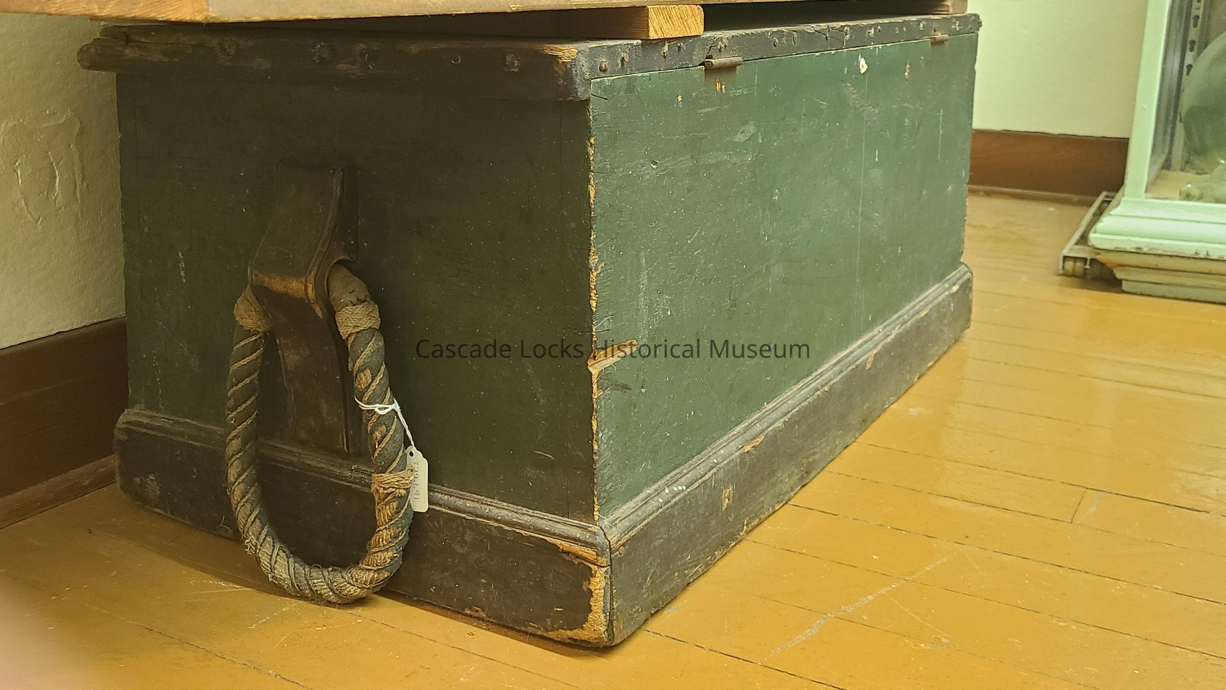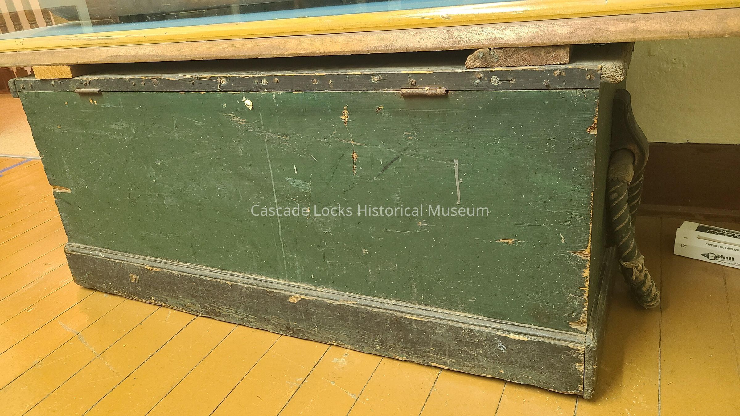 Top and bottom edge of trunk are painted black, with the middle section and handles painted green.
