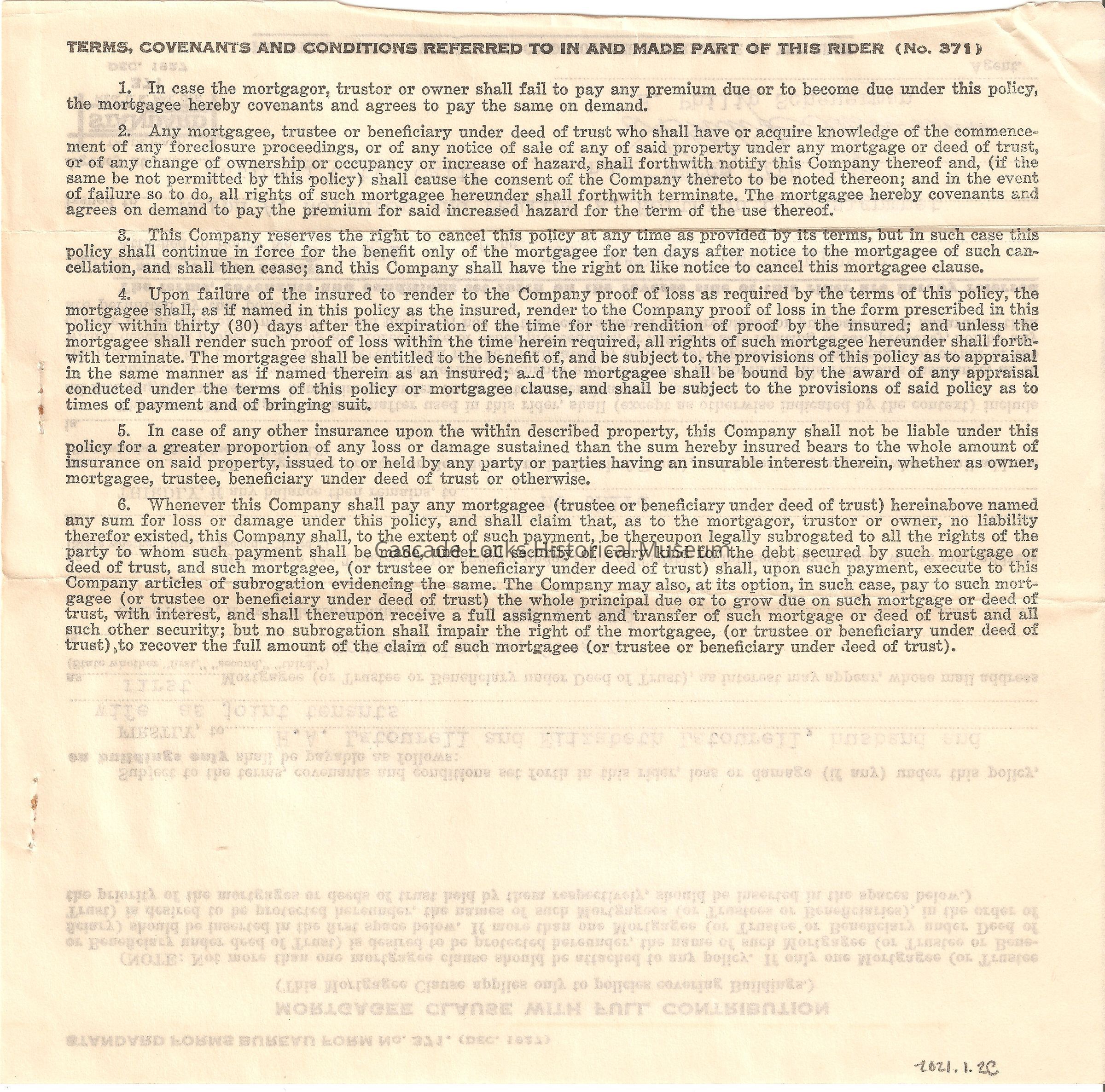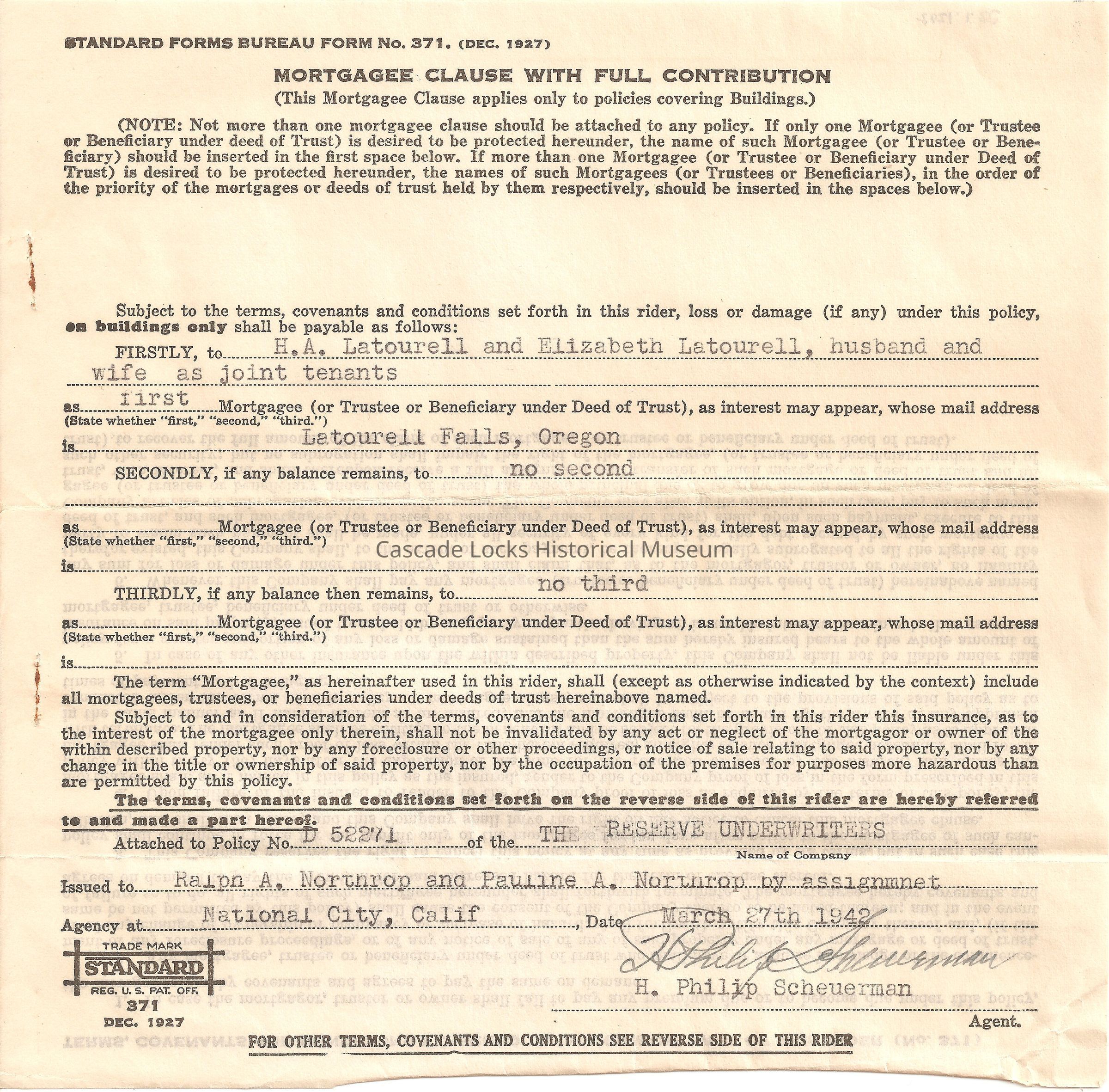 Insurance Document, Latourell EstateEntry/Object ID