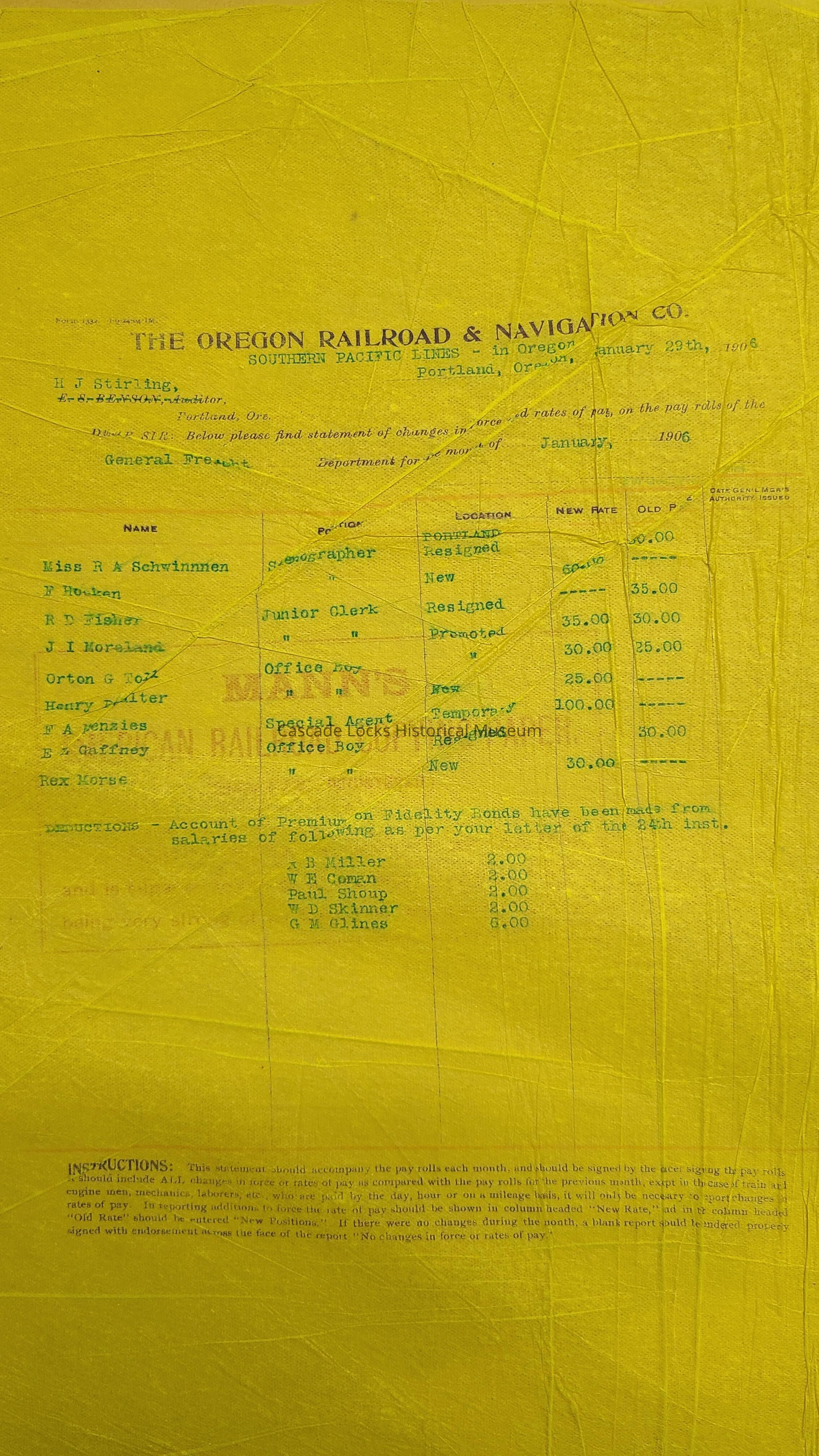 O.R.&N. Co. Payroll Ledger 1906-1910