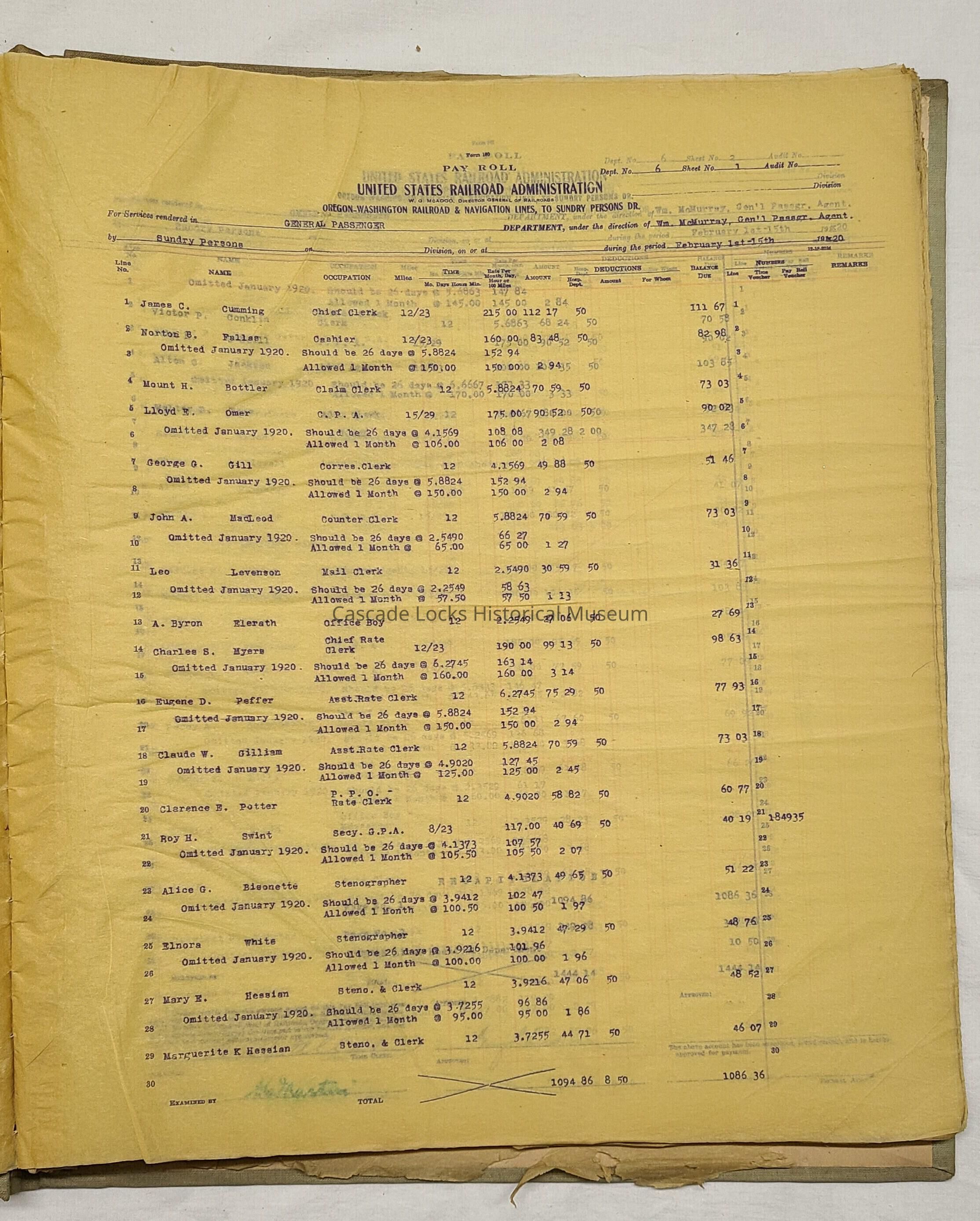 O.W.R.&N.Co Payroll Ledger 1918-1920