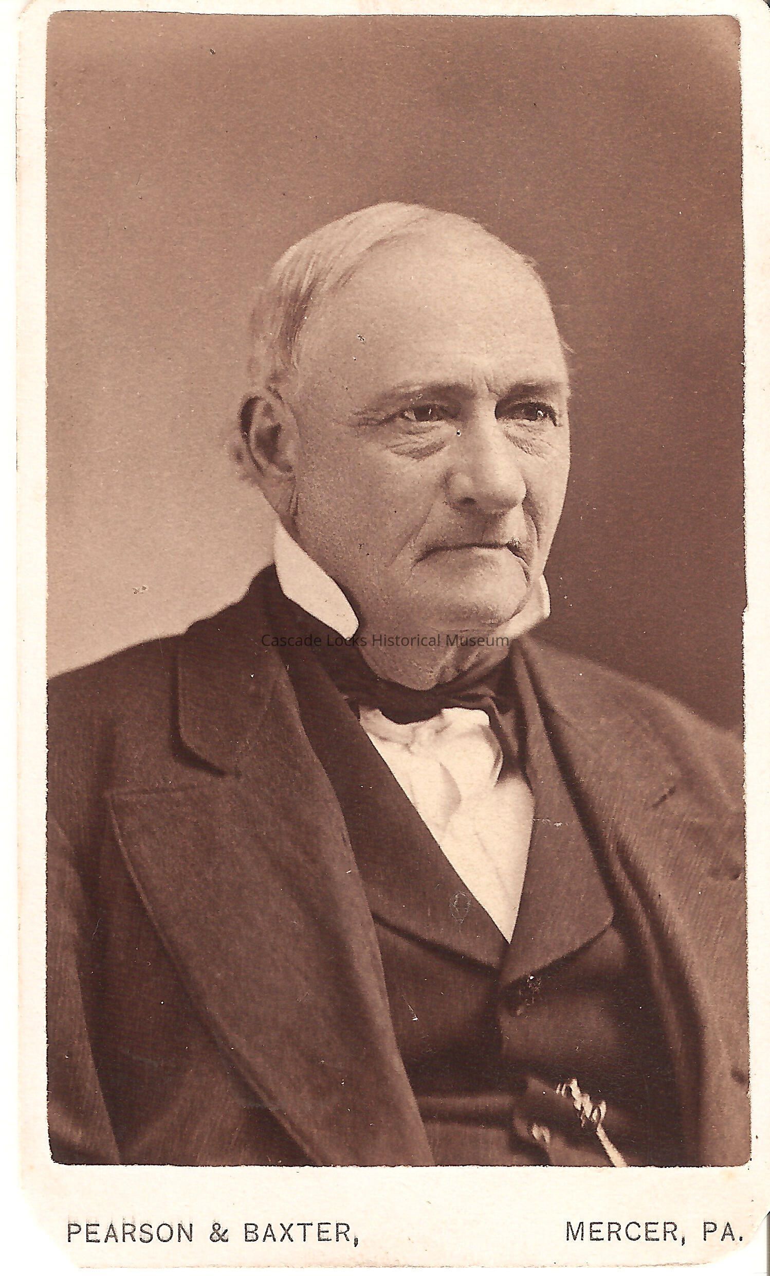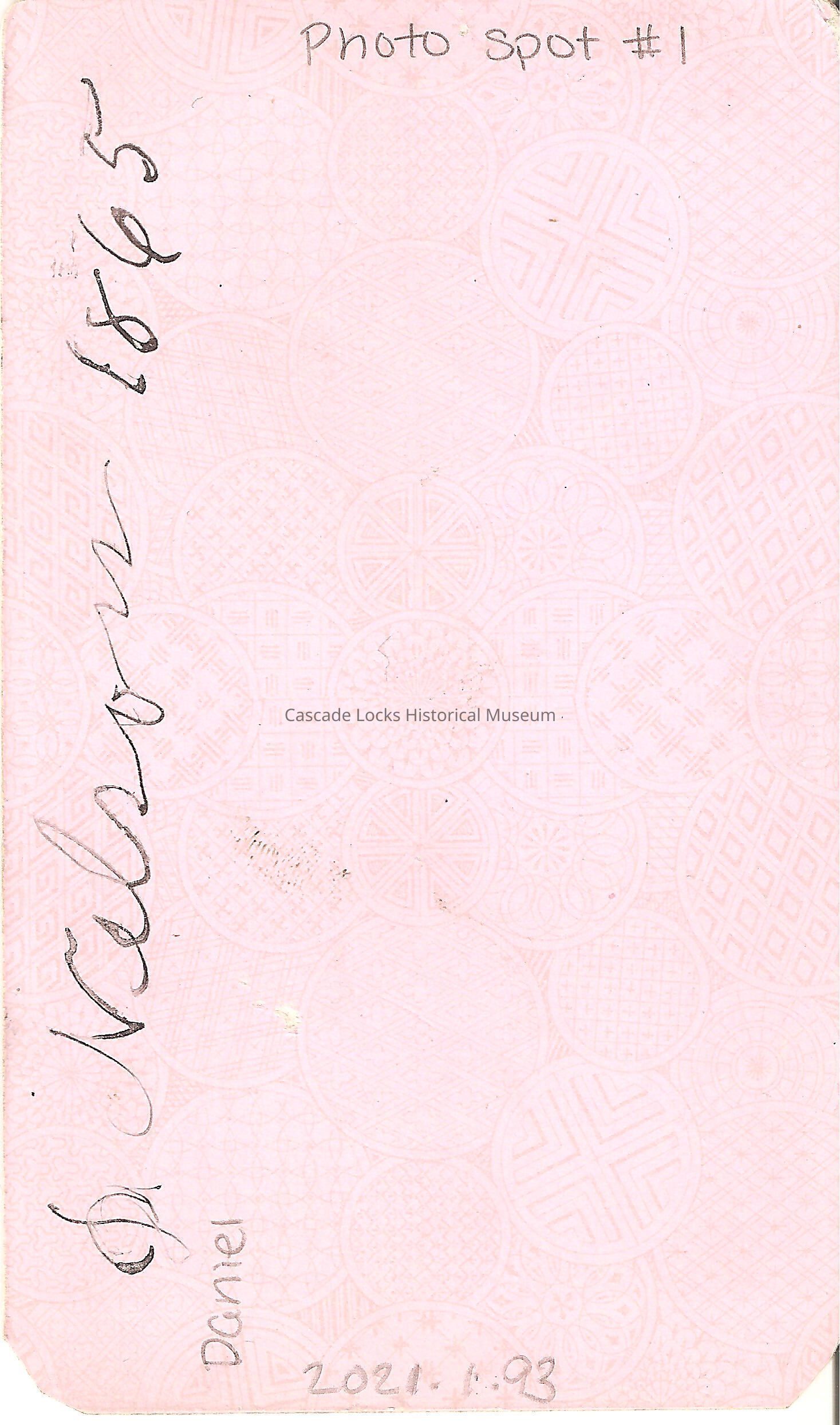 Photo portrait of D. (Daniel) Nelson. The image is in black and white of a clean shaven man with light hair wearing a suit. Image is on a white cabinet card. The bottom of the card reads Pearson & Baxter, Mercer, Pa. Back of cabinet card has a pink hue. Back of card reads: D. (Daniel) Nelson, 1865. Previously located in photo album 71.74.4 in spot number 1 donated by Margret Johnson