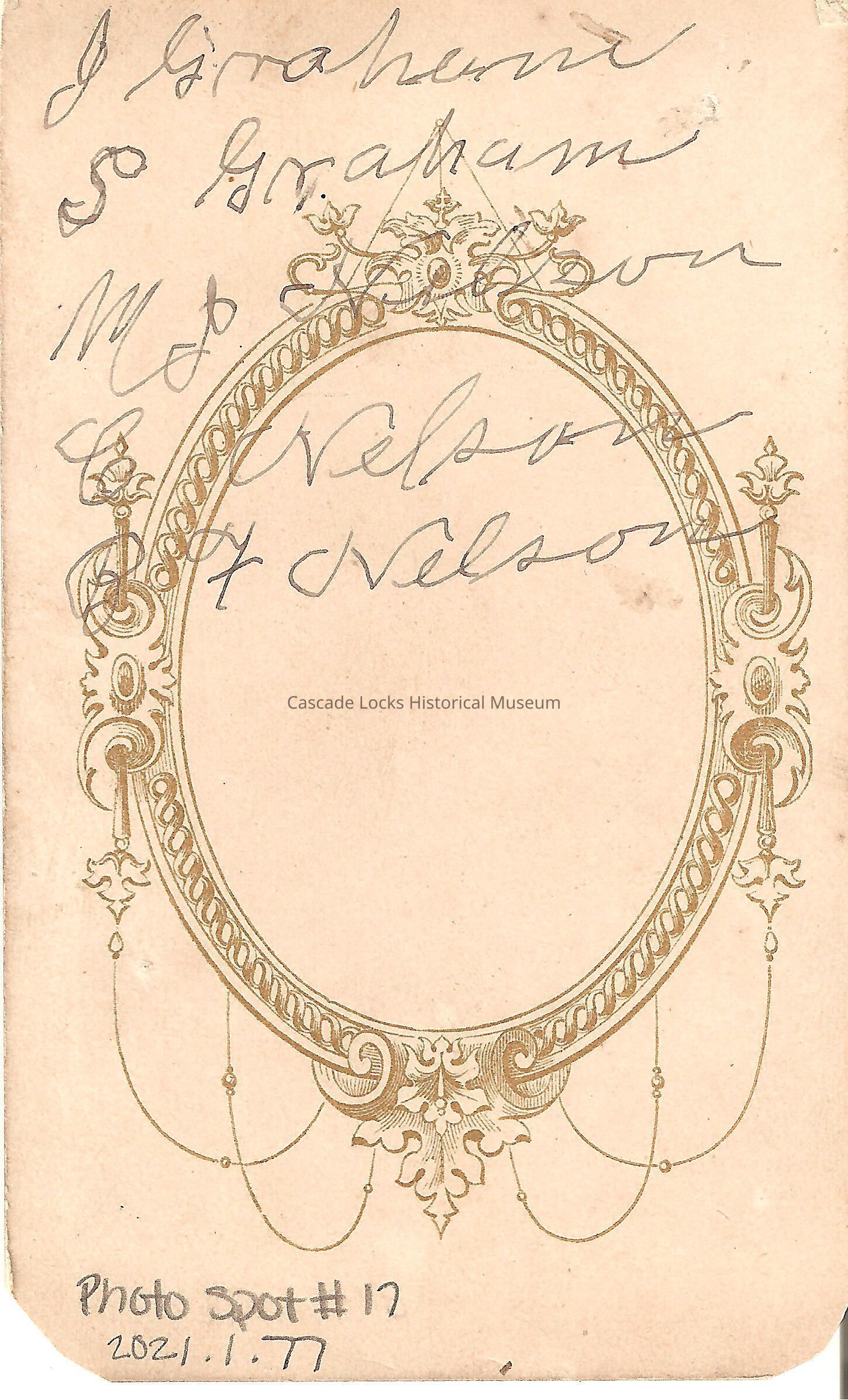 Back of card reads: J. Graham, S. Graham, M. P. Nelson, C. Nelson, B. T. Nelson