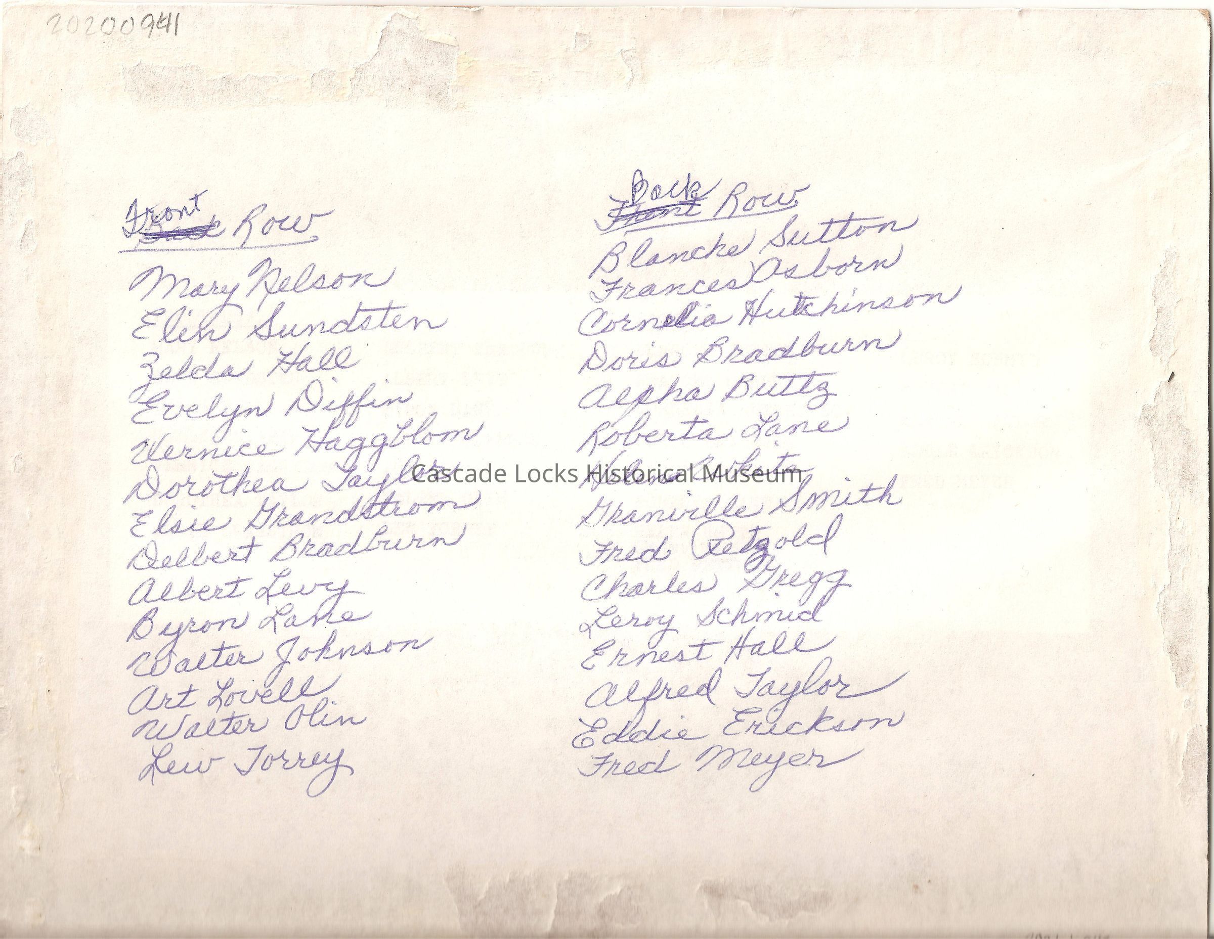 Back of card reads; Front Row- Mary Nelson, Elin Sundfsten, Zelda Hall, Evelyn Diffin, Vernice Haggblom, Dorothea Taylor, Elsie Grandstrom, Delbert Bradbern, Albert Levy, Byron Lane, Walter Johnson, Art Lovell, Wlter Olin, Lew Torrey, Back Row- Blanche Sutton, Frances Osborn, Cornelia Hutchinson, Doris Bradborn, Alpha Buttz, Roberta Lane, Helen White, Granirlle Smith, Fred Petgold, Charles Gregg, Leroy Schmid, Ernest Hall, Alfred Taylor, Eddie Erickson, Fred Meyer.Made/Created