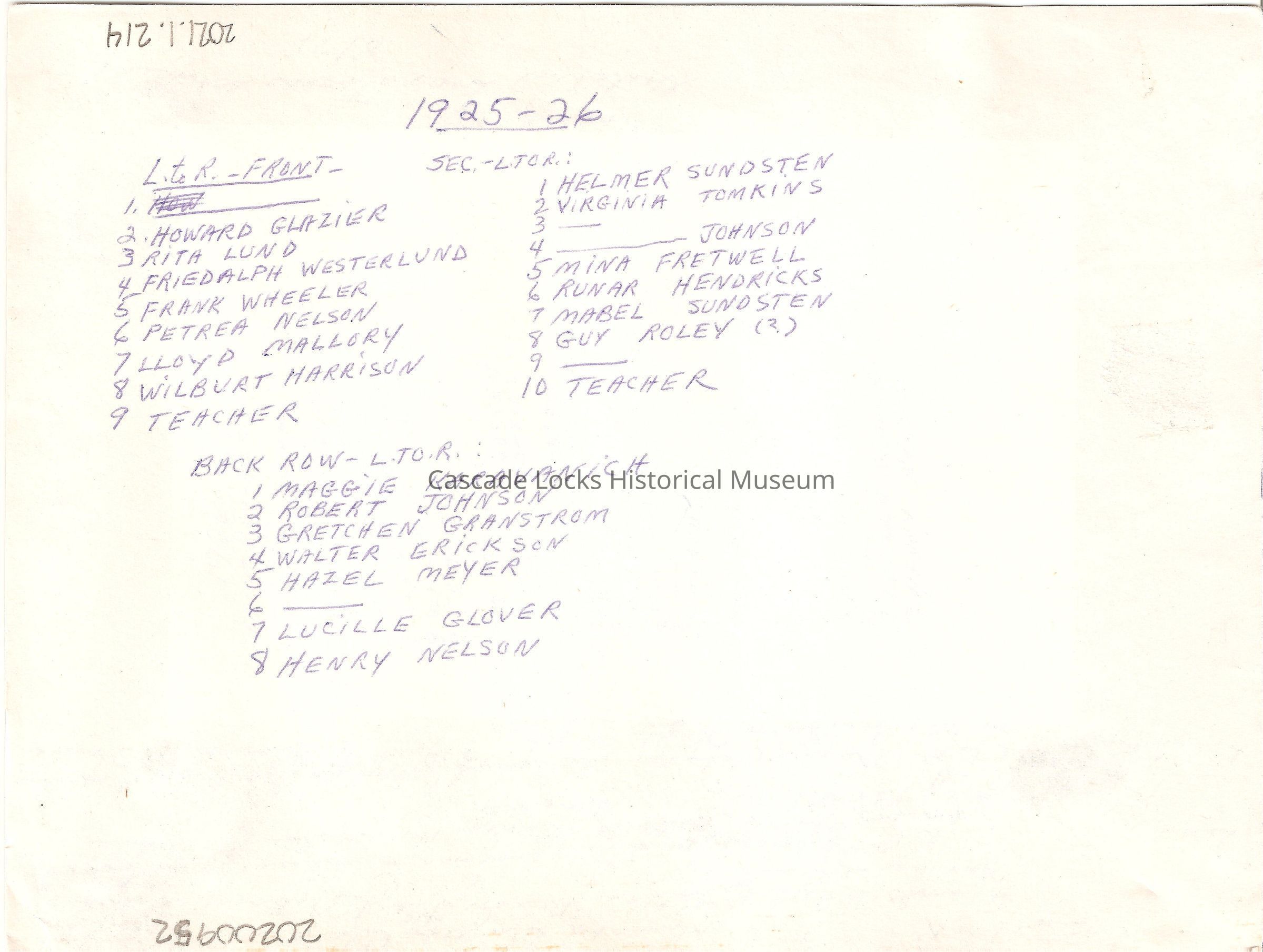 There is the date of 1925-26 written in three spots on the front of the image, in the upper middle, bottom middle, and bottom left corner.