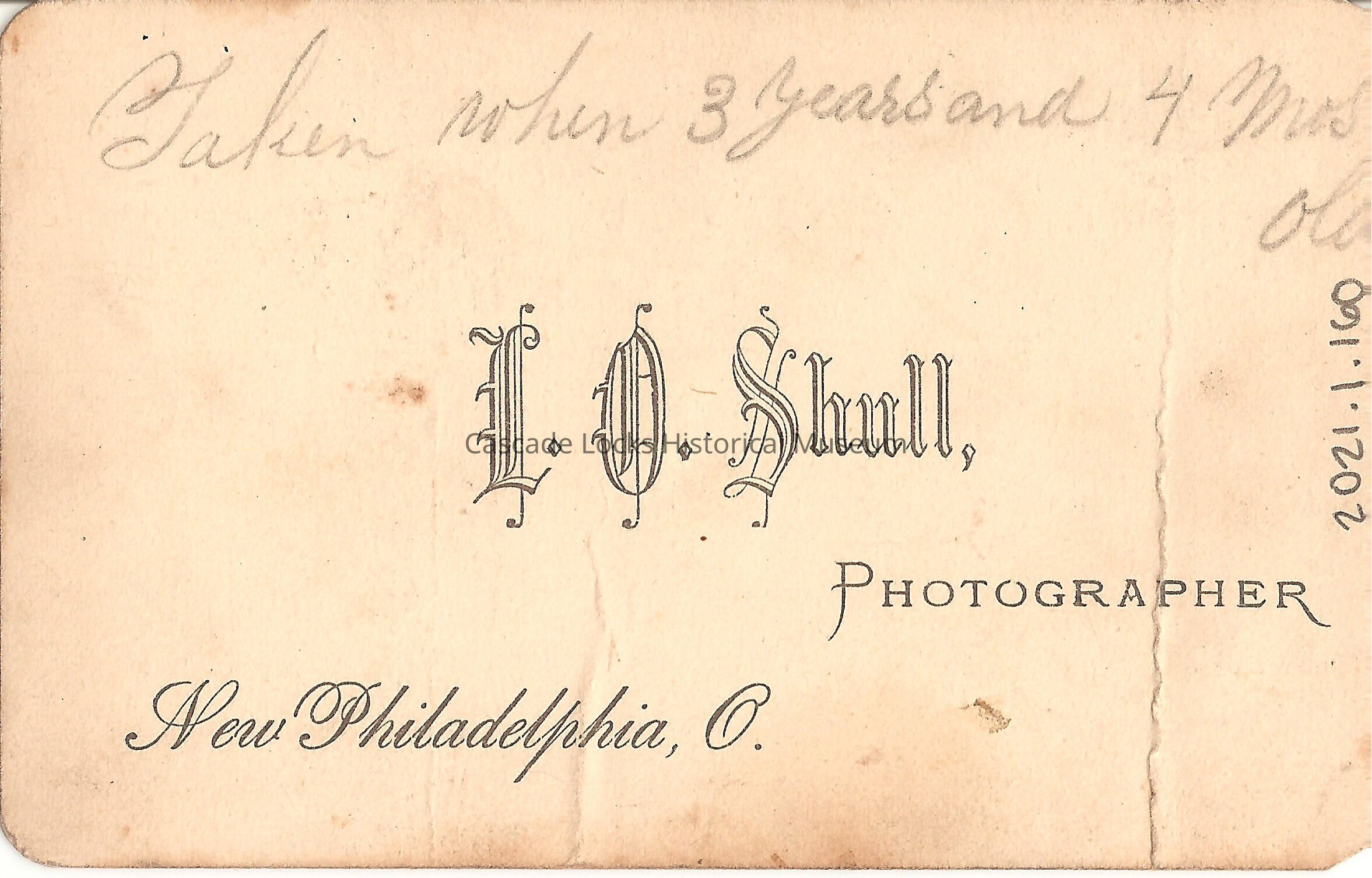 Inscription- Talsen when 3 years and 4 months old. Makers Mark- L. O. Shull, Photographer, New Philadelphia, O.