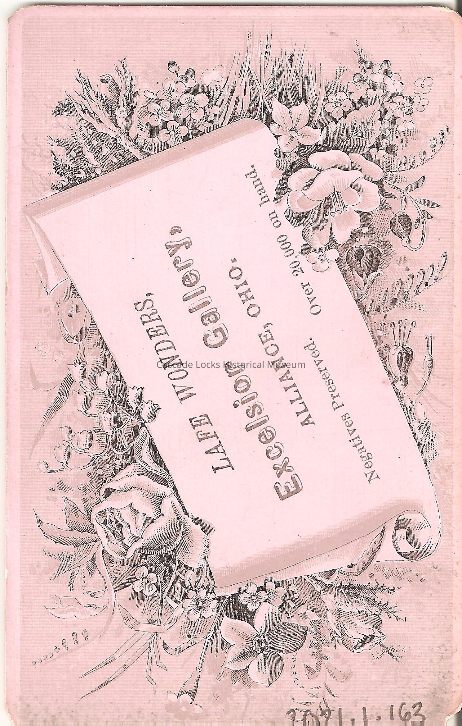 Lafe Wonders, Excelsior and Gallery, Alliance, Ohio. Negative preserved over 20,000 on hand