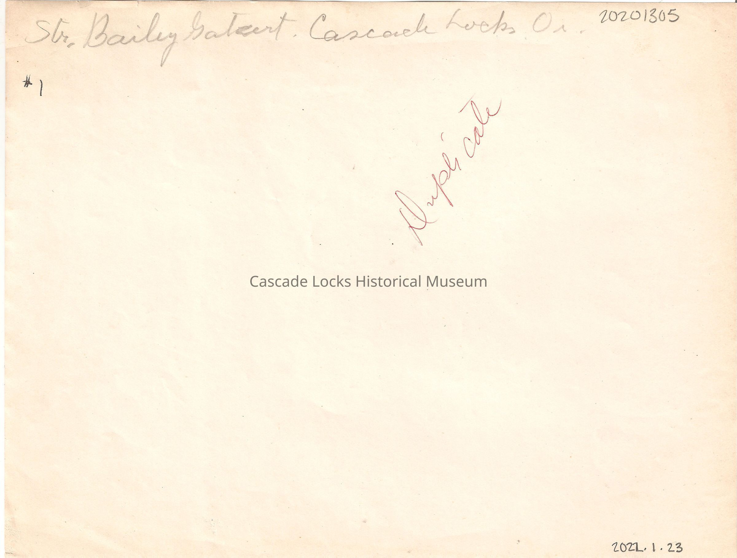 Back of image reads; "Str. Bailey Gatzert. Cascade Locks, Or. Duplicate."