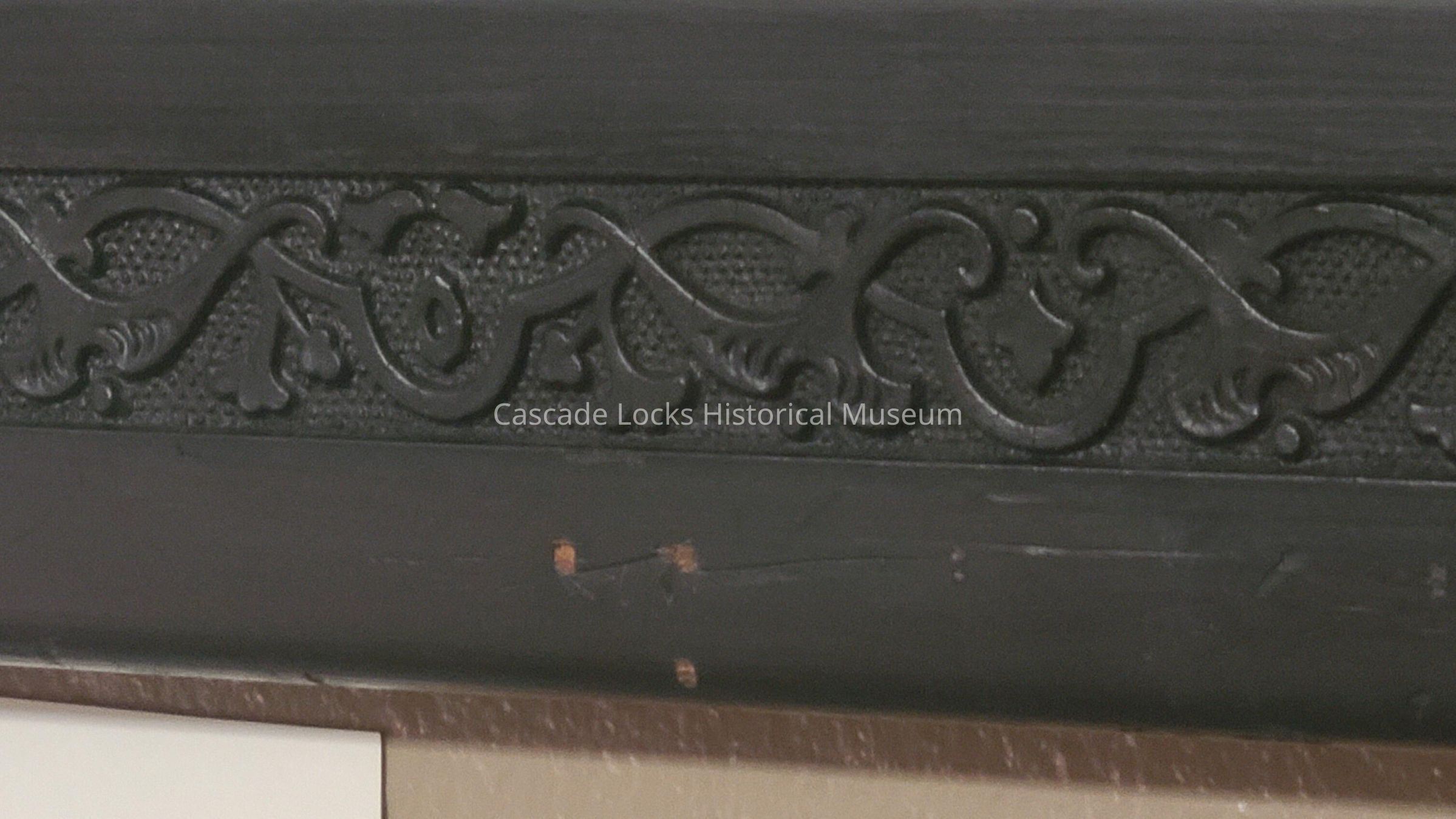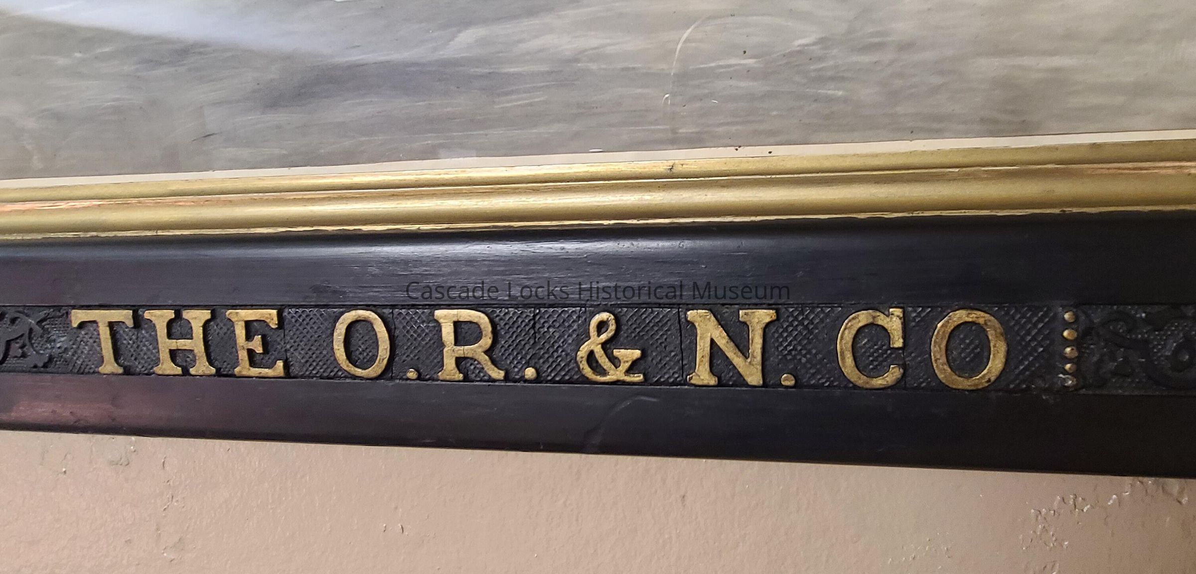The frame is black with gold inside edging and gold font. The font on the front base of the image reads, "The O.R.&N. Co." Abbreviation for The Oregon Railroad and Navigation company.Made/Created